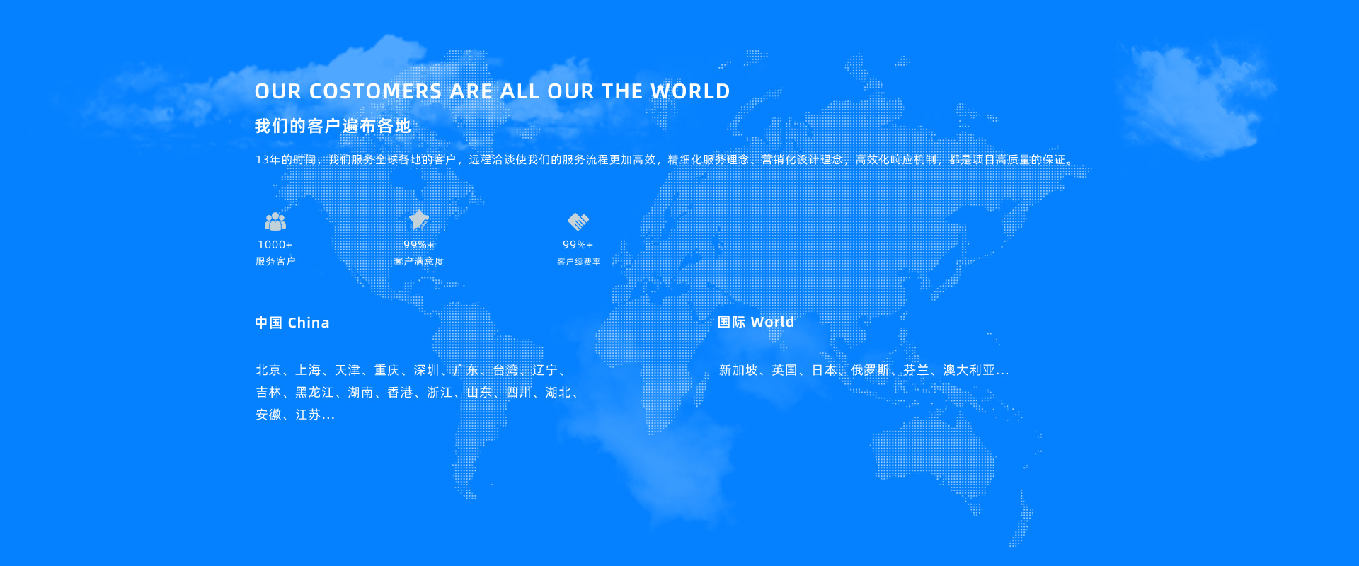13年行业经验,覆盖100+国内外城市和地区,助力企业搭建更具性价比的企业网站