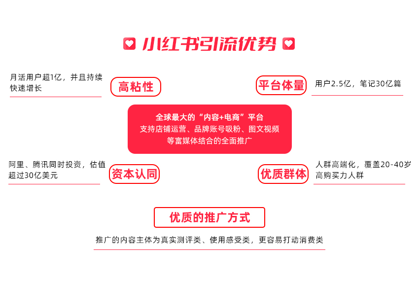 品牌背书:坐拥全球“内容+电商”平台,通过图文、视频等富媒体,打造全面推广计划